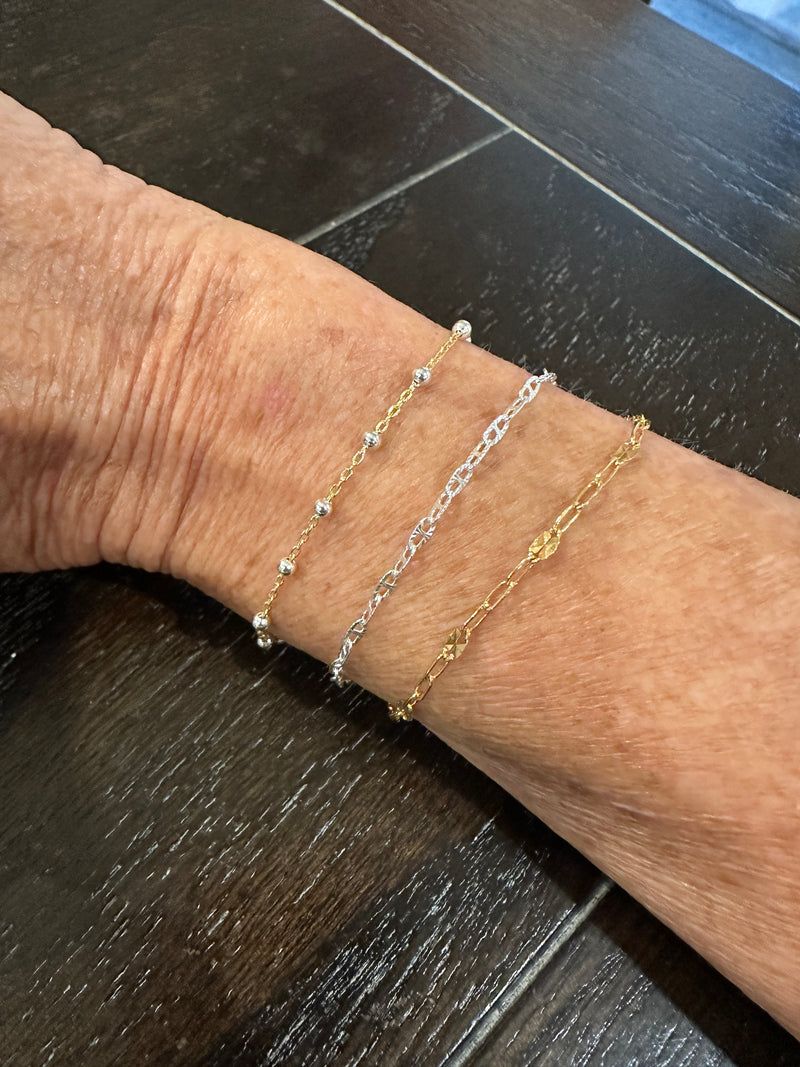 Each chain is measured to your perfect fit, then micro-welded with a quick, safe spark that feels as effortless as the jewelry itself. The result is a timeless piece designed to move with you!