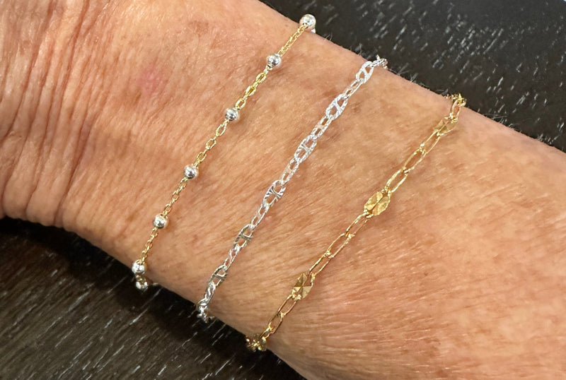 Each chain is measured to your perfect fit, then micro-welded with a quick, safe spark that feels as effortless as the jewelry itself. The result is a timeless piece designed to move with you!